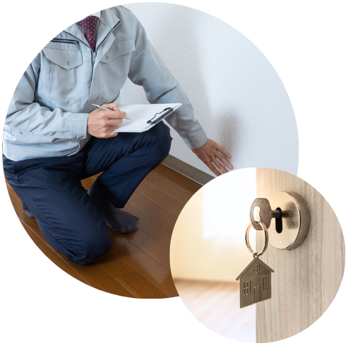 退去時の費用精算や破損箇所の確認、設備不良の対応など、入居に関するトラブルを迅速に解決致します。入居者様との立会時には丁寧な説明を行い、不要なトラブルを防ぎます。