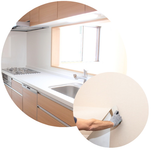 賃貸物件の退去後に必要な原状回復工事を、迅速かつ丁寧に対応します。退去時の立ち会いから修繕工事までワンストップで行うため、管理会社様やオーナー様の手間を大幅に削減します。